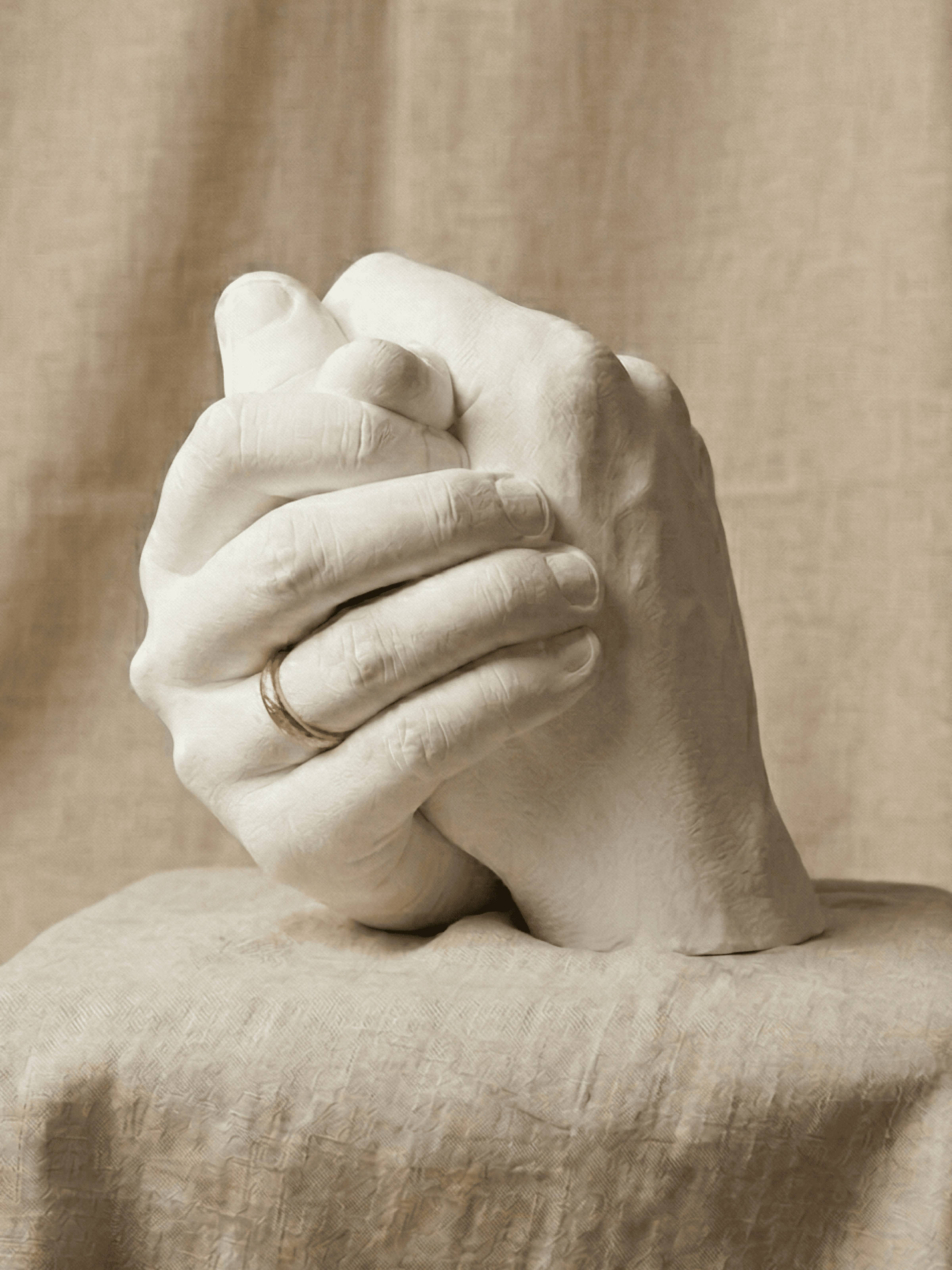 On prend l’empreinte d’une partie de votre corps avec un produit doux et sans danger pour la peau (L’alginate), puis je coule du plâtre dedans. Une fois sec, la pièce est nettoyée et retravaillée pour faire ressortir chaque détail. On obtient alors une sculpture unique, reproduction fidèle de vos empreintes.
