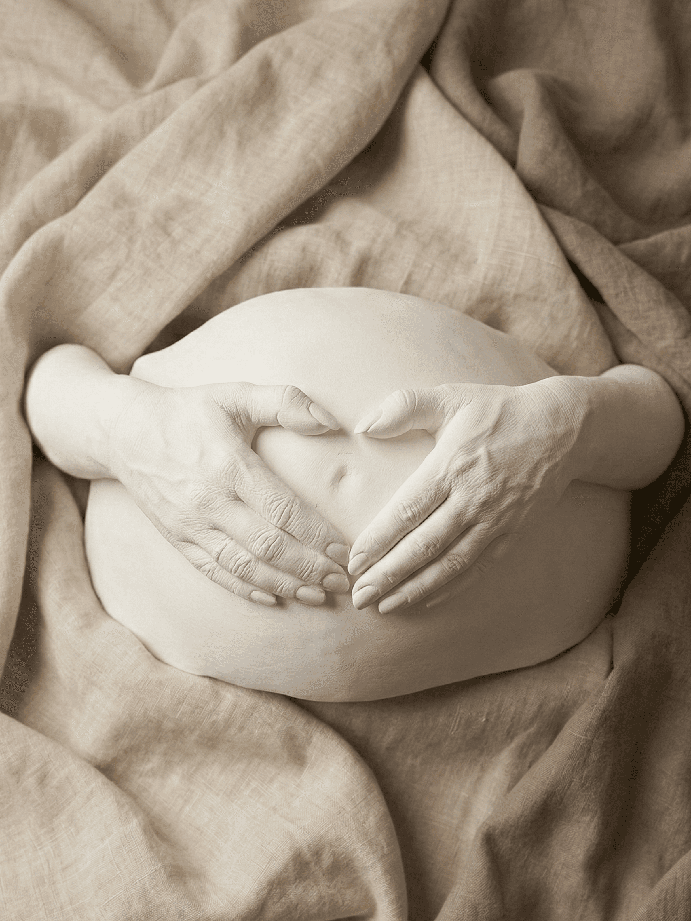 Votre silhouette ou vos 9 mois d'attente, figés dans le plâtre. Des pièces fortes, sculpturales, uniques.